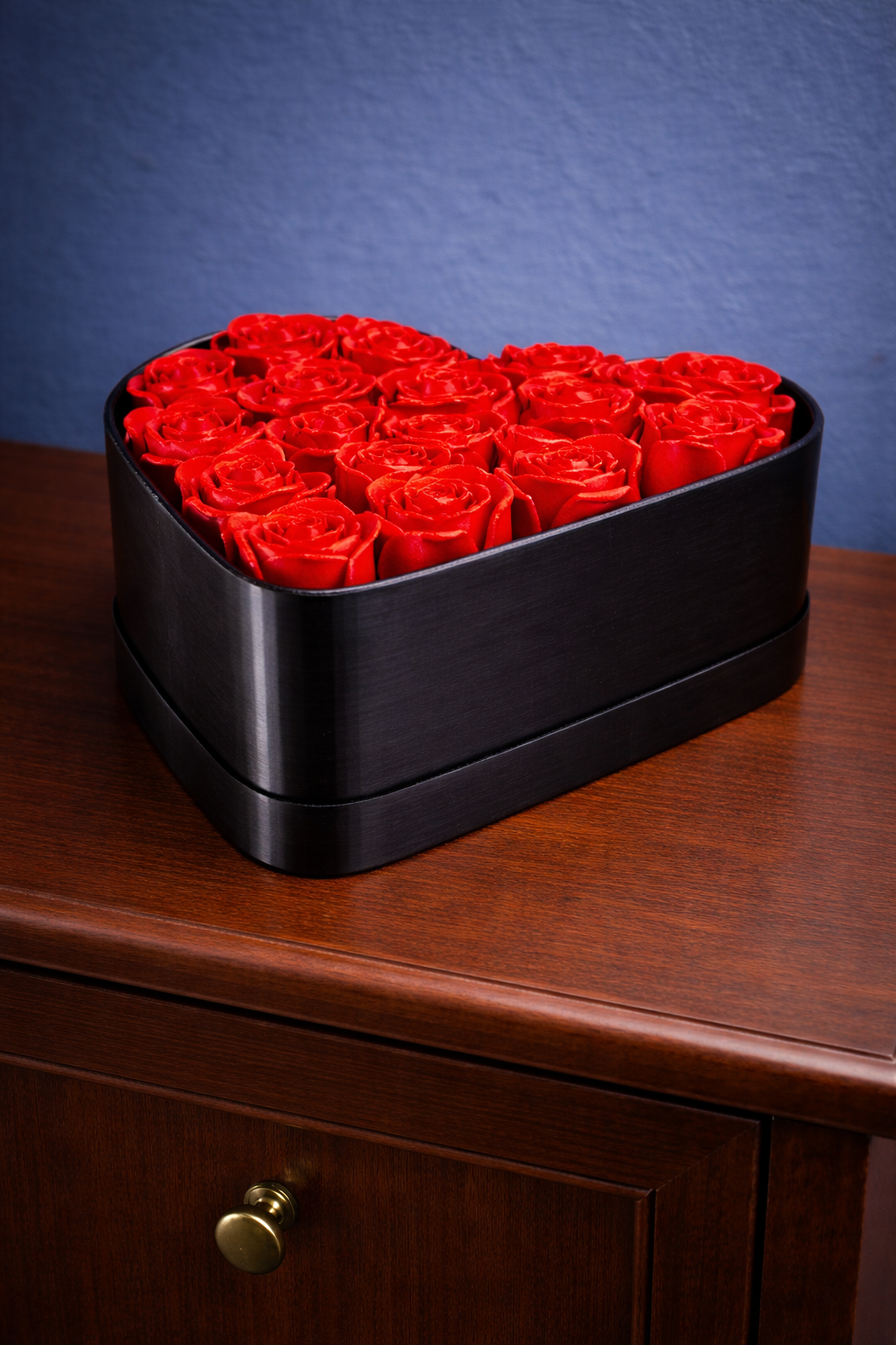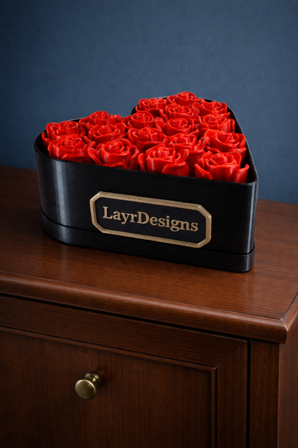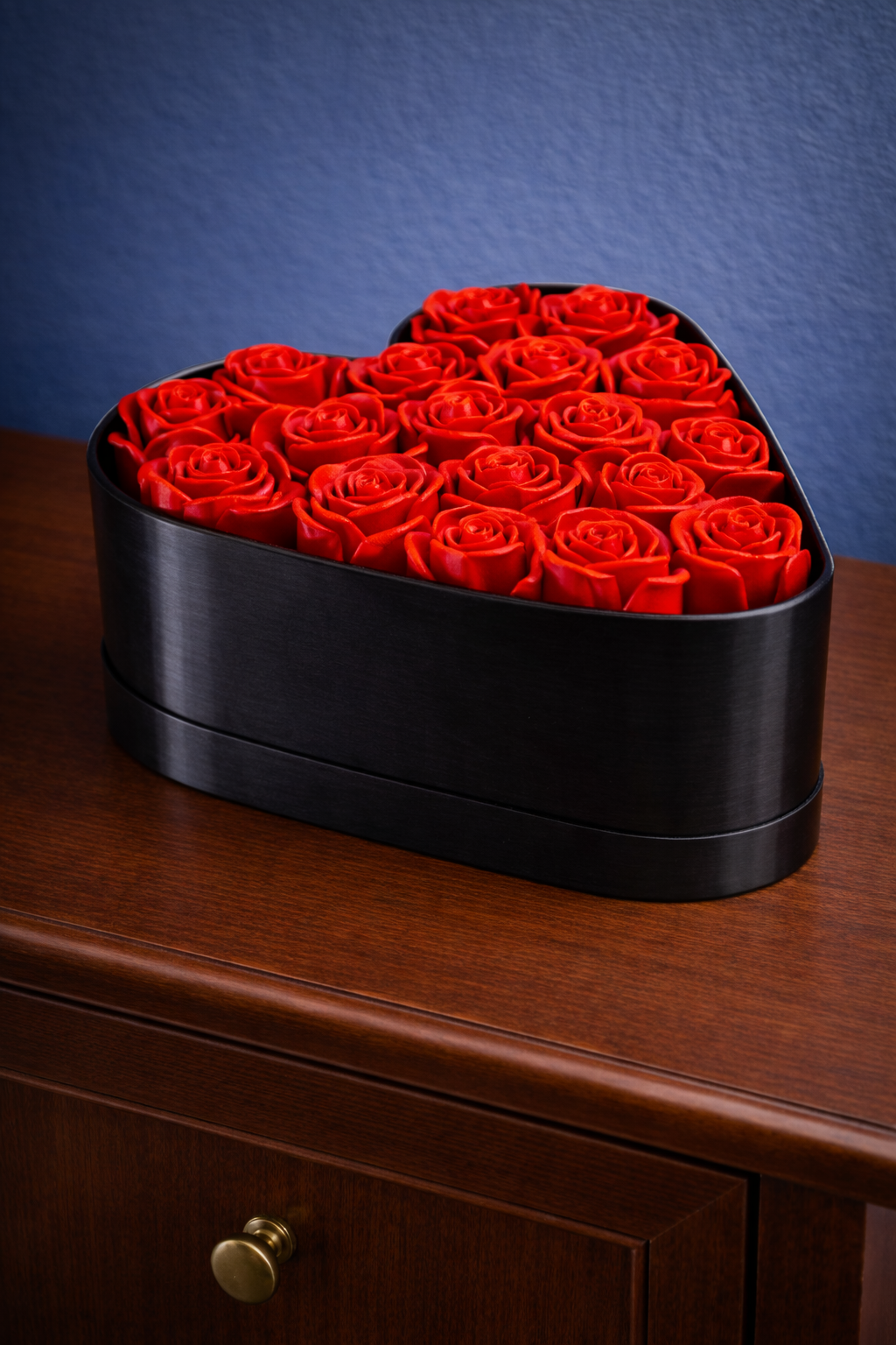 Een leuke en artistieke hartvormige rozendoos. een leuk en creatief cadeau voor degene die het verdient